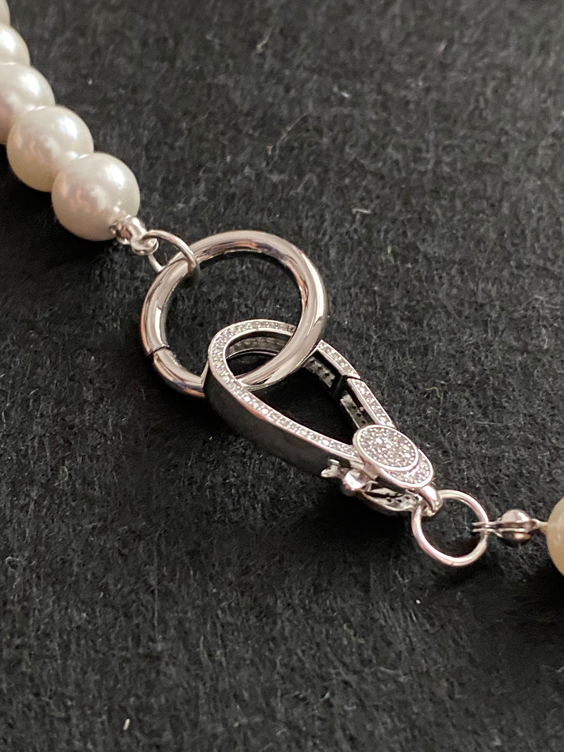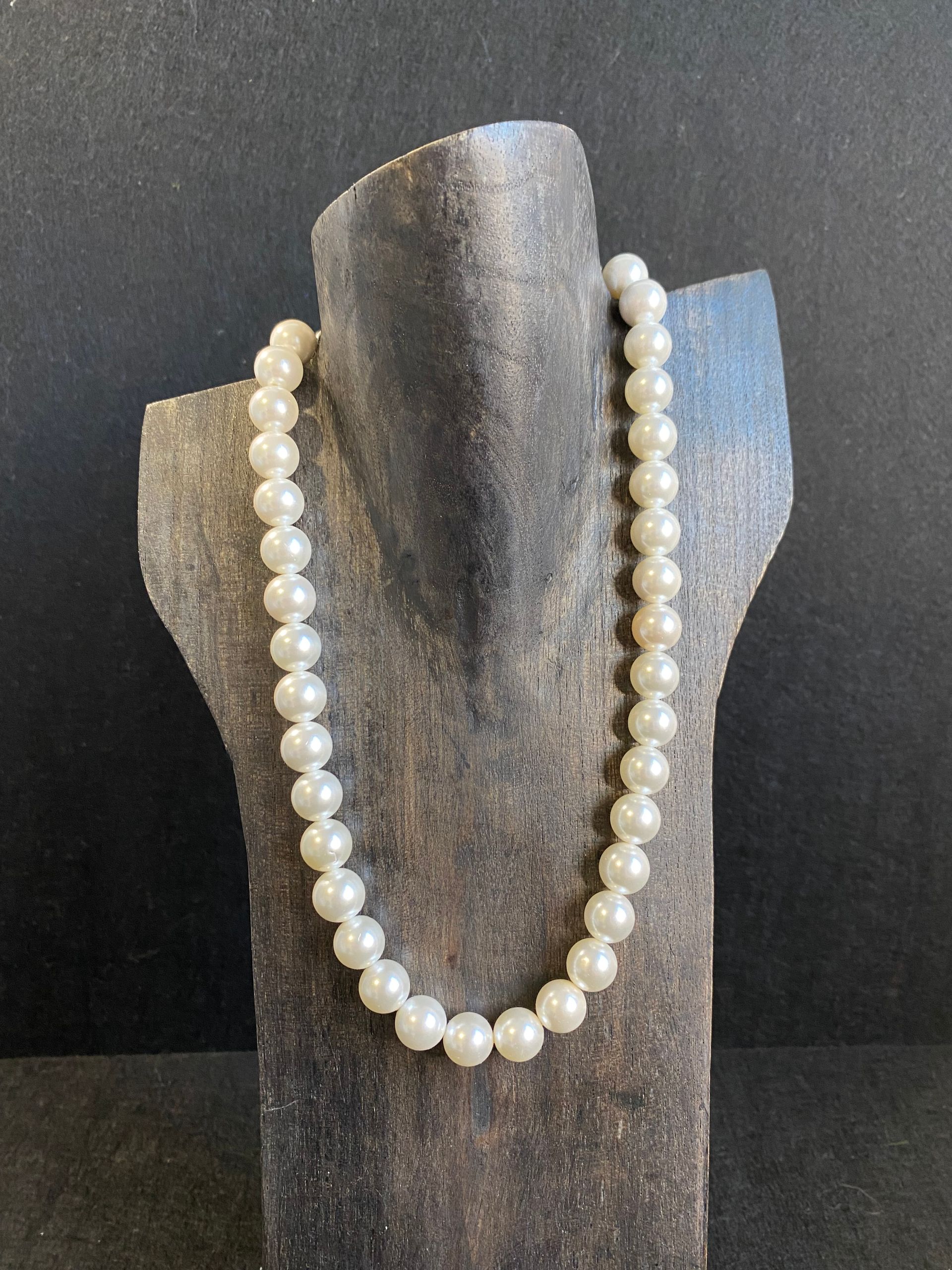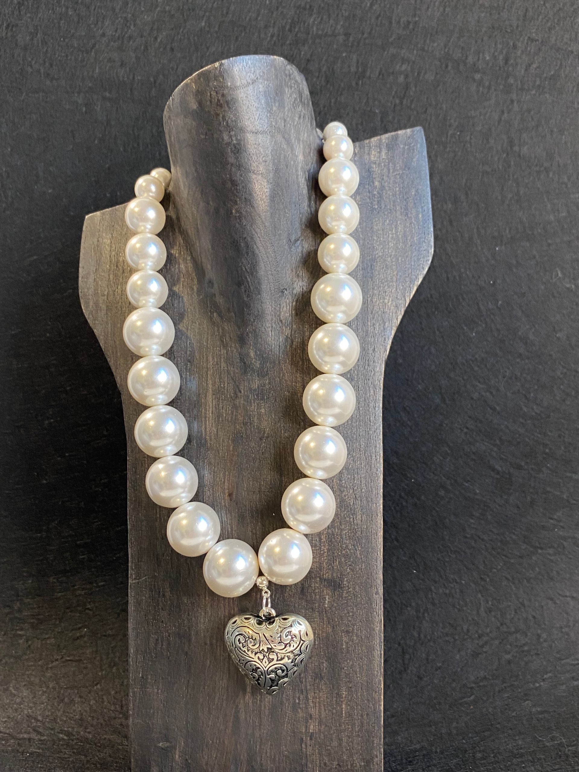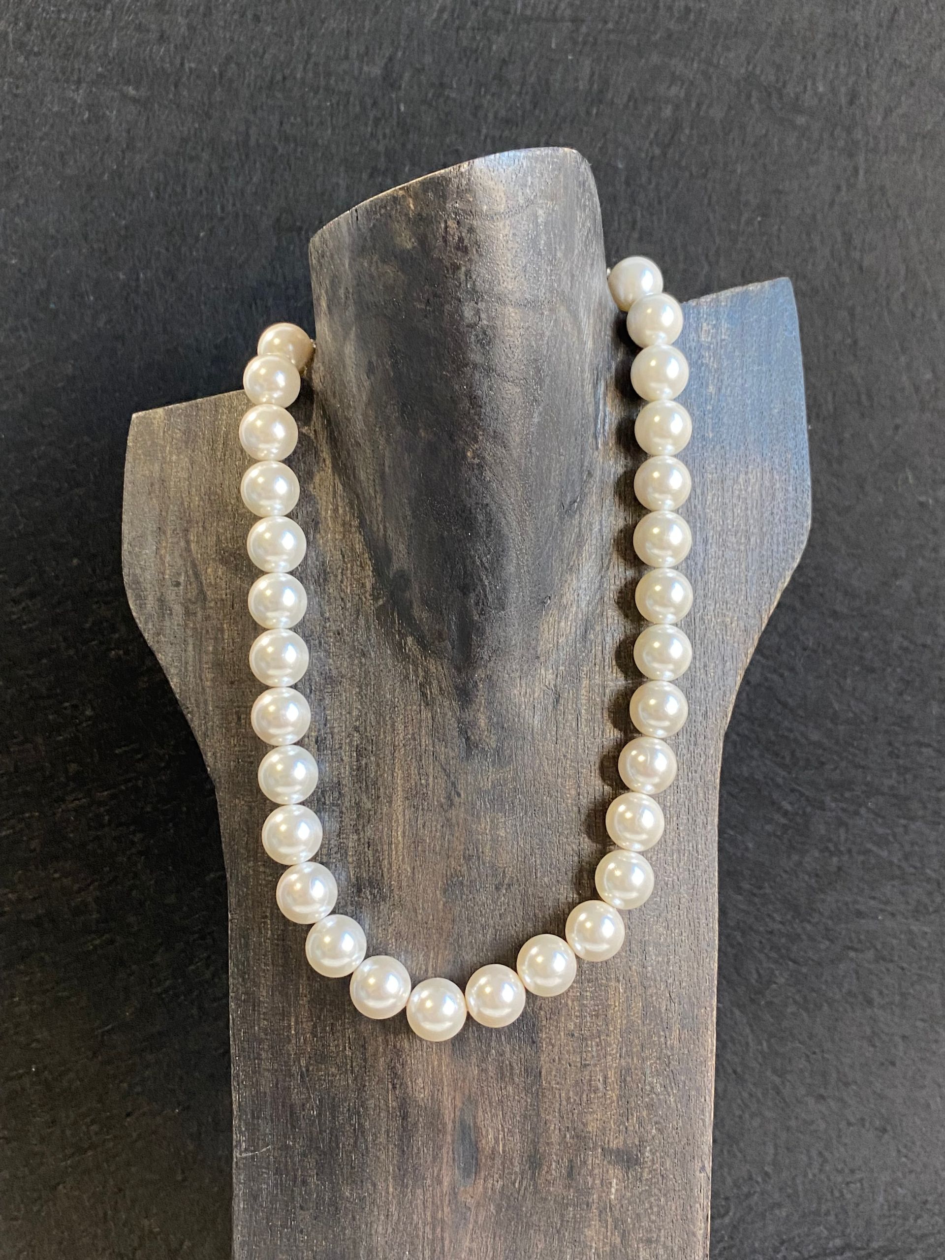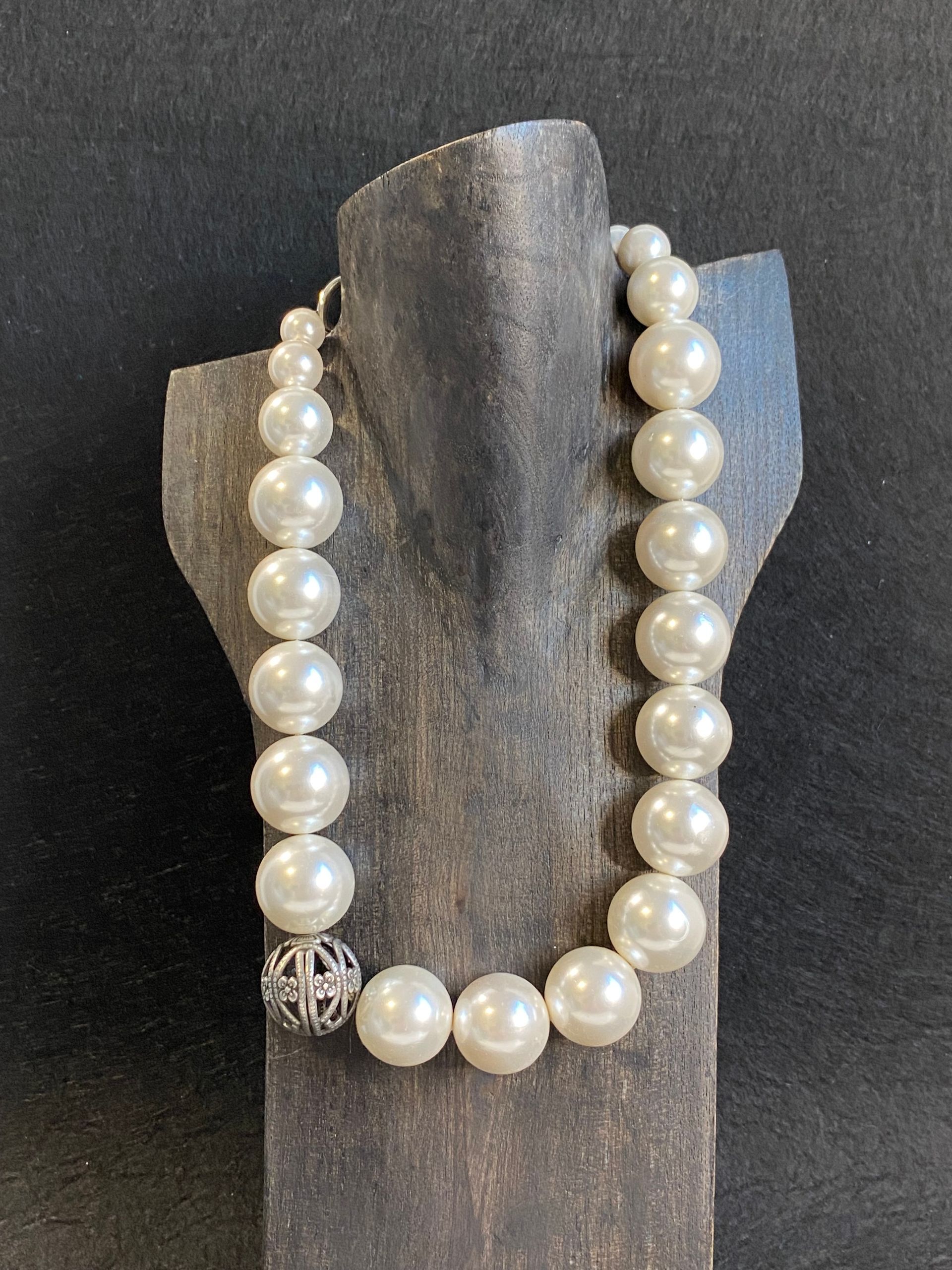 Collana in perle di maiorca bianca (12mm) con maxi finitura in metallo (senza nichel).