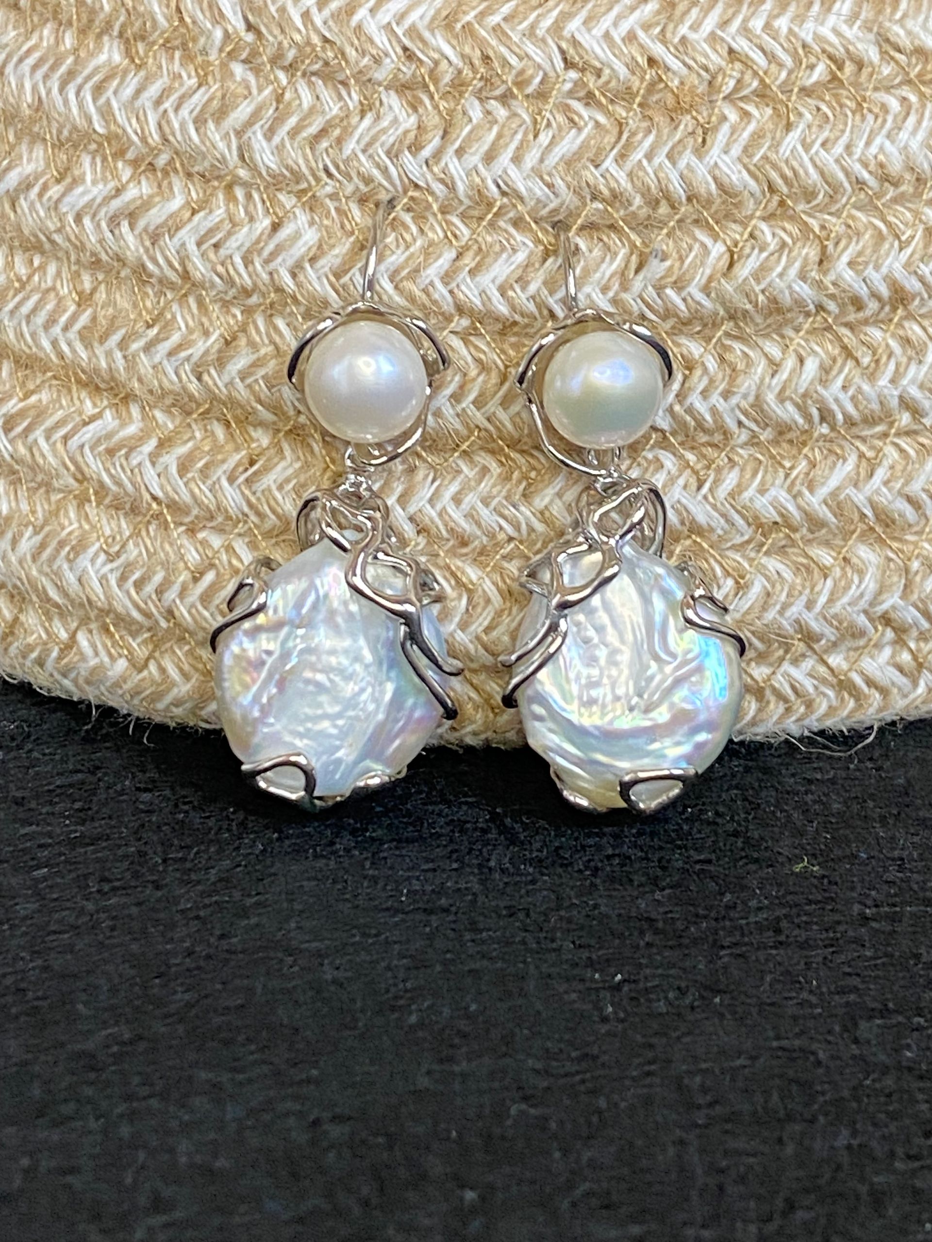 Base a monachella (senza nichel) incastonato con perle di fiume e pendente di perle barocche
