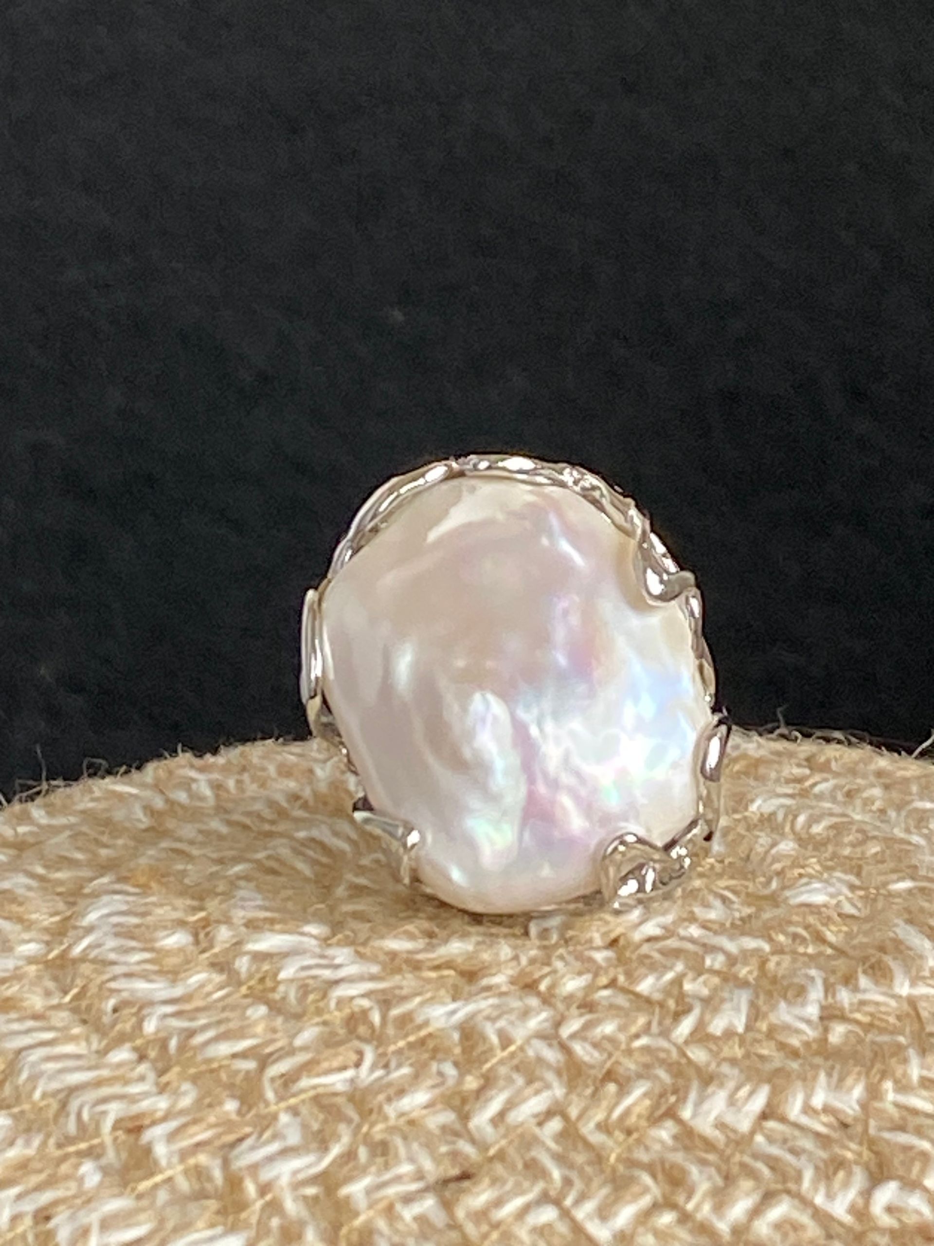 Anello con base in metallo incastonato con maxi perla di fiume.
