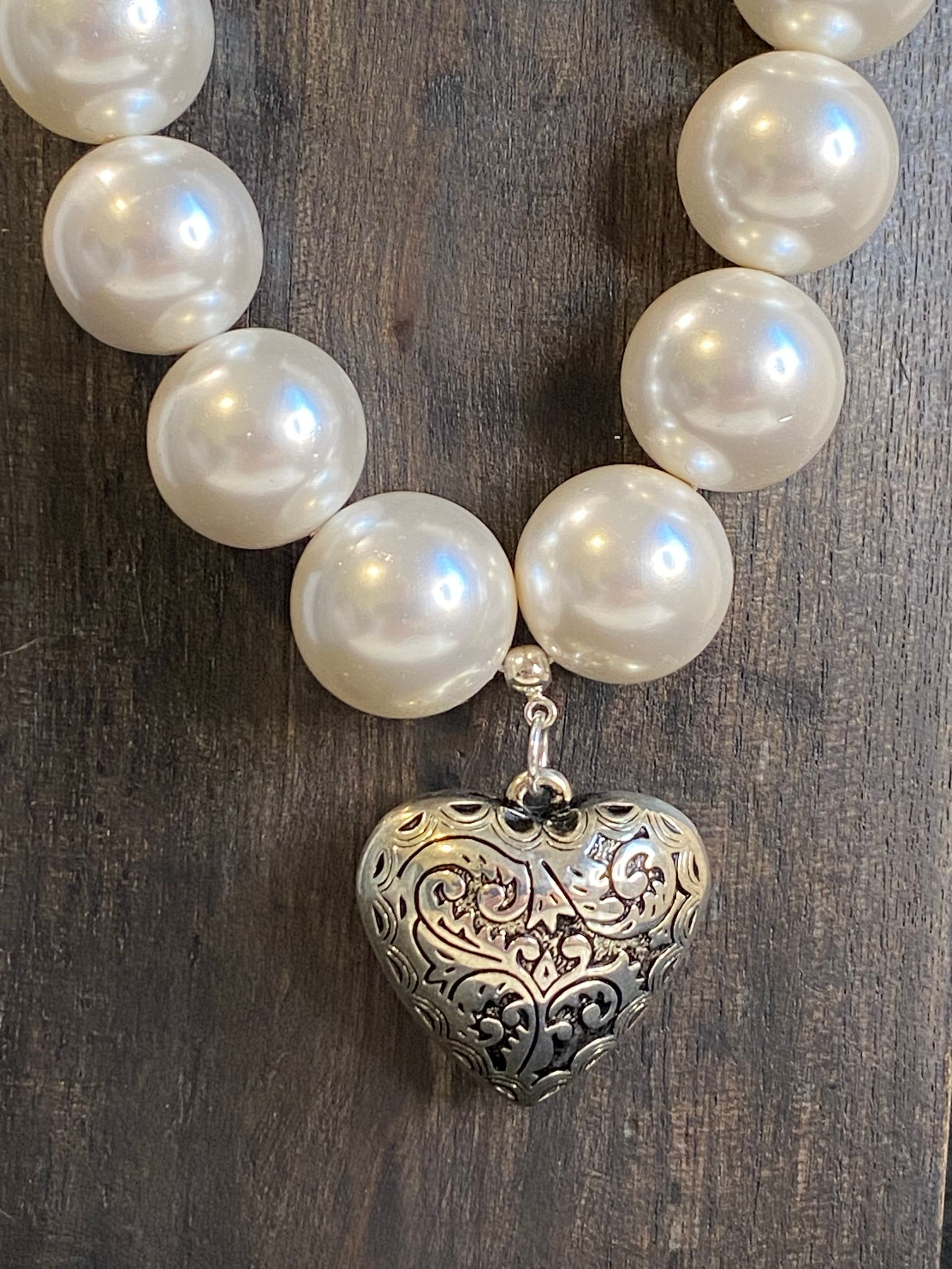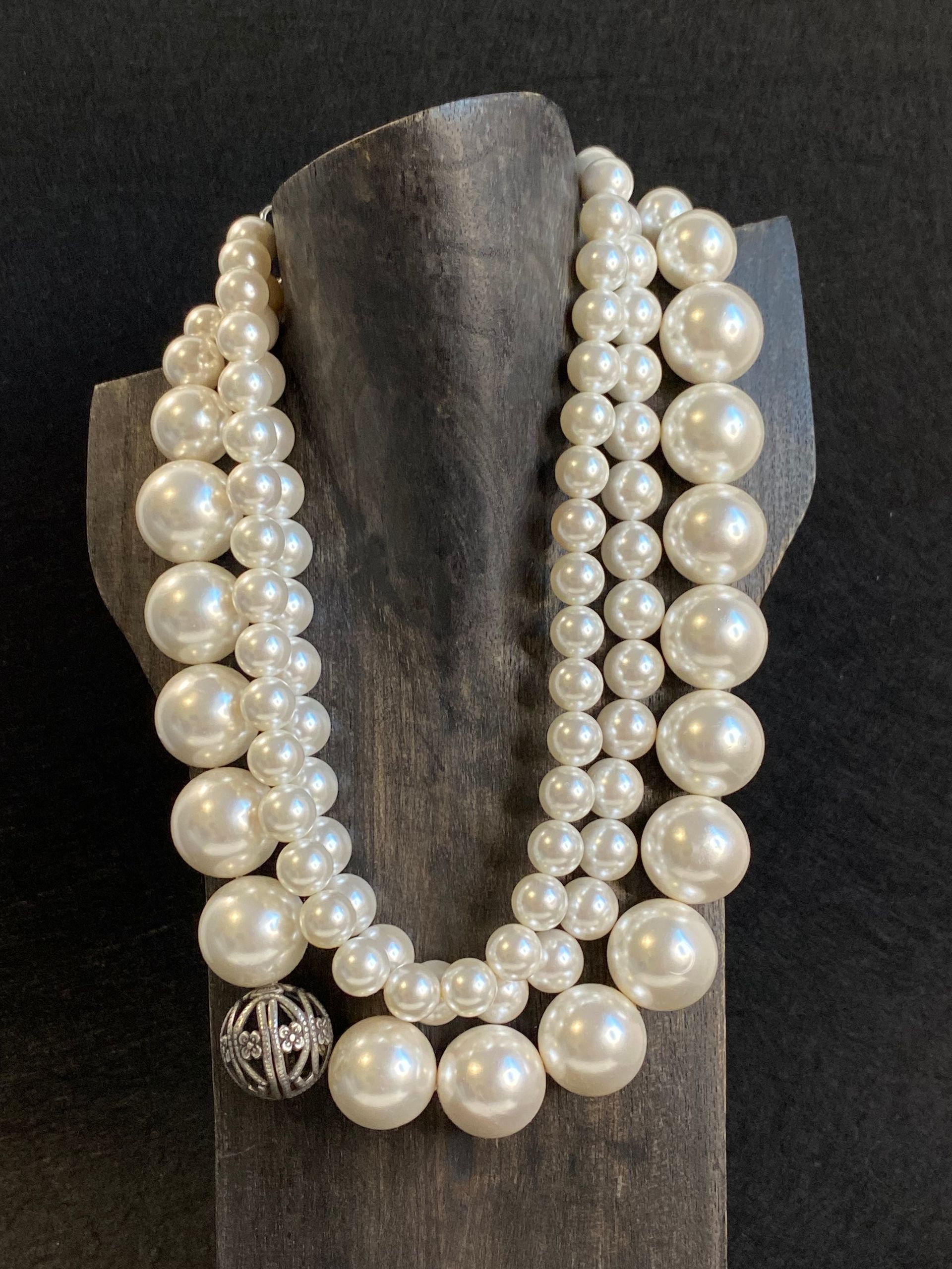 Collana in perle di maiorca bianca (10mm) con maxi finitura in metallo (senza nichel).