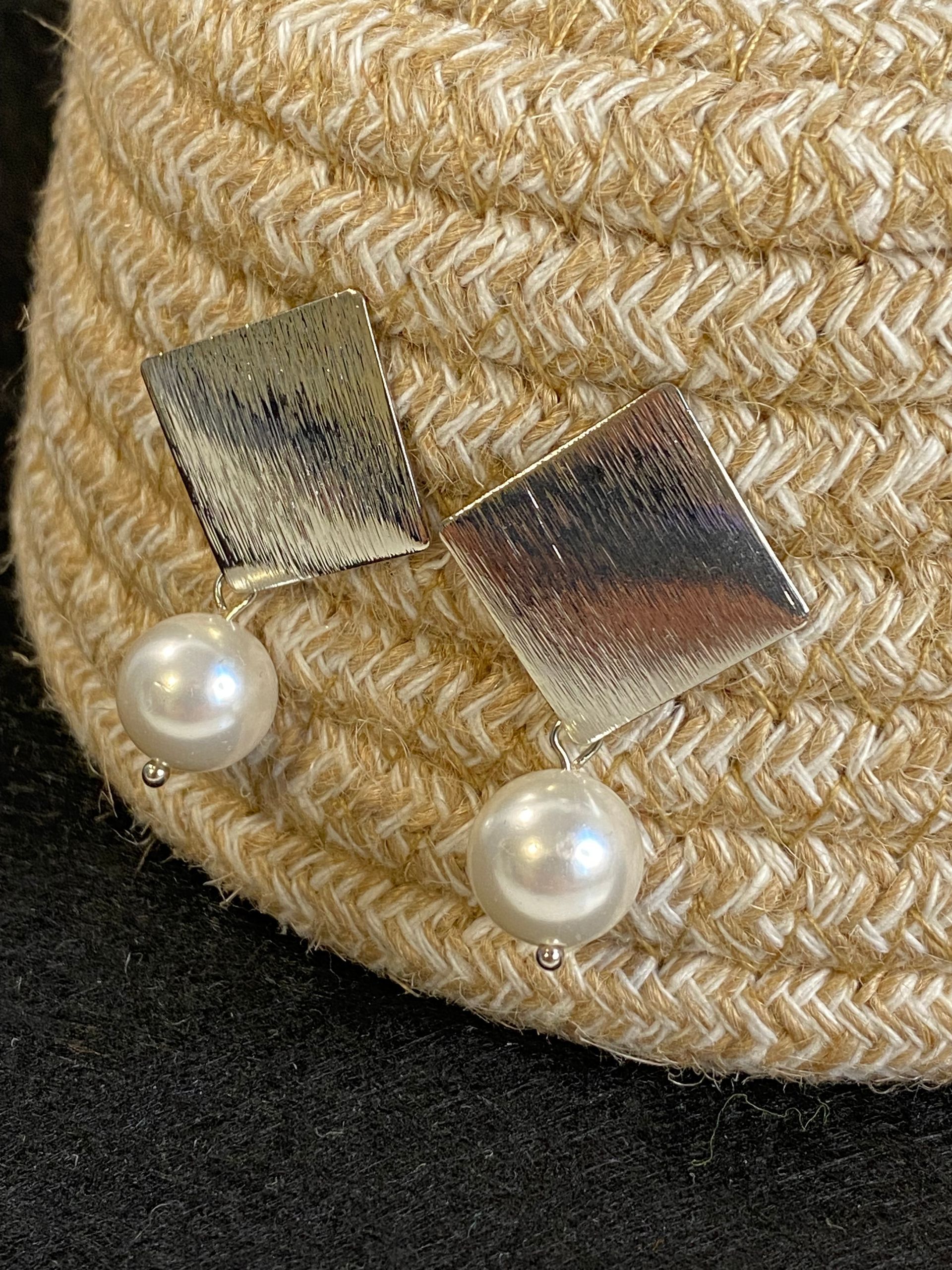 Base in perno metallo (senza nichel) con perle di maiorca bianca (16mm).