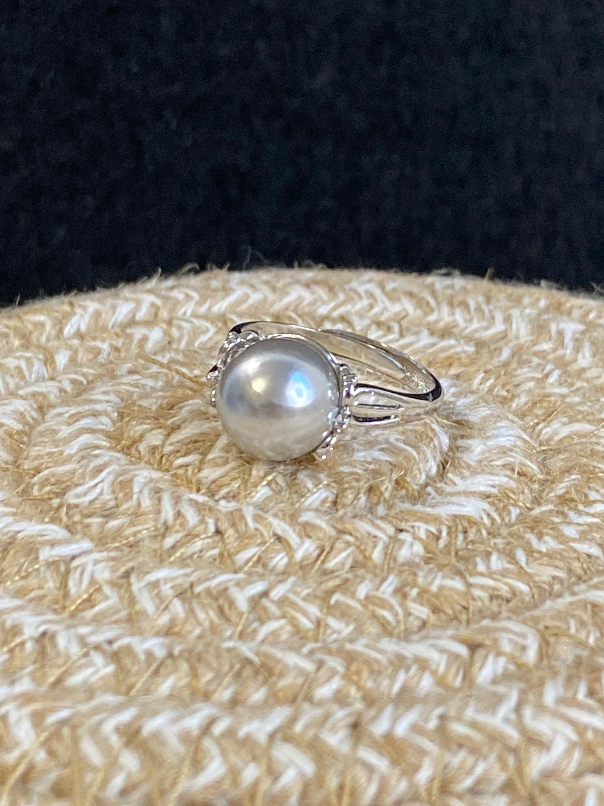 Anello con base in metallo incastonato con perla grigia di maiorca (10mm).